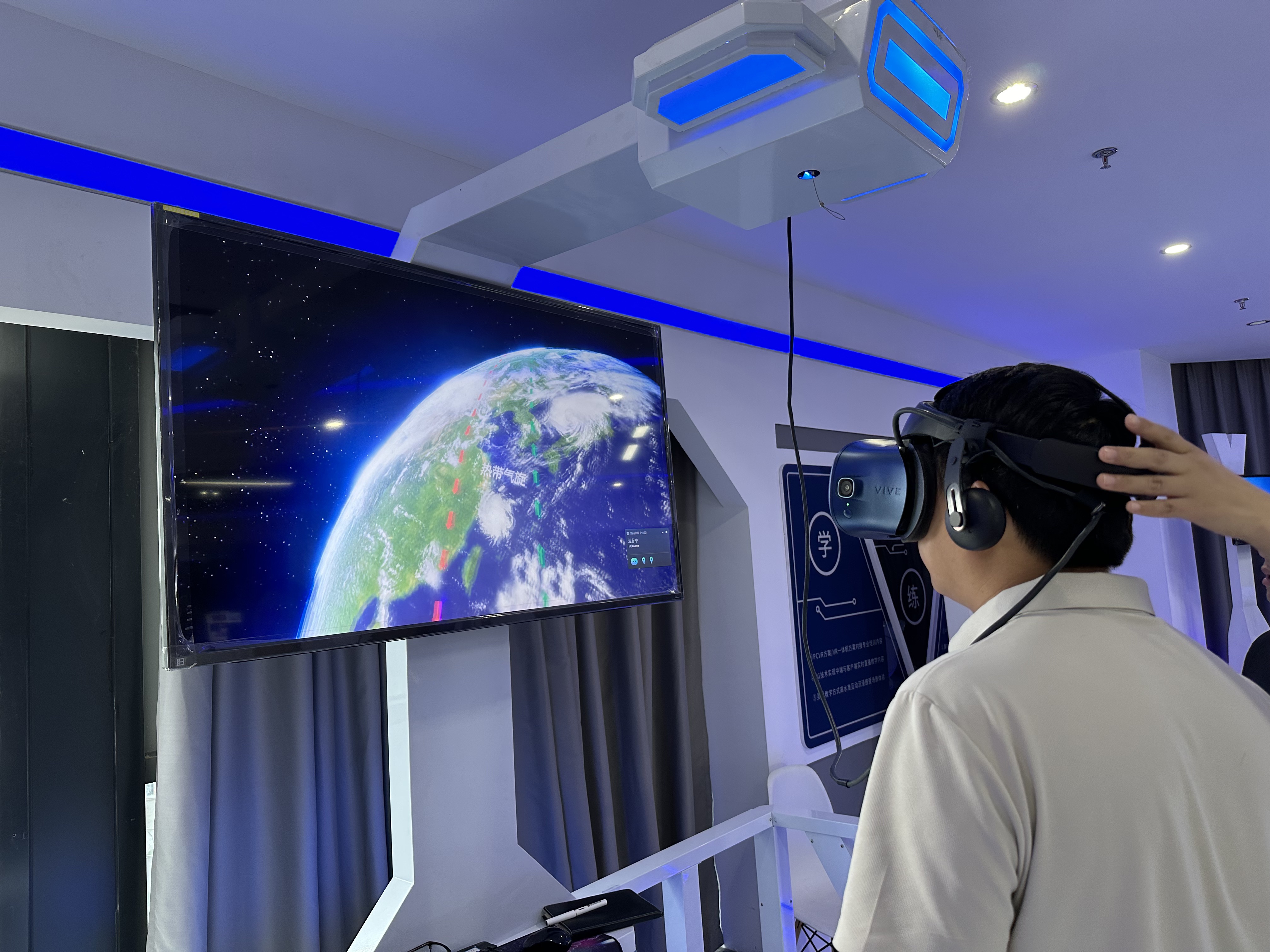 既然是智能化安全體驗館,怎么能少了VR設備呢!第三個展區便是今天的壓軸戲---VR安全體驗區。VR與安全體驗結合的優勢是它可以在虛擬現實中展現真實施工事故發生的場景,讓體驗者學習正確的安全施工方法,身臨其境,鍛煉體驗者應對事故發生的應急能力,通過虛擬現實更深刻的增強體驗者的施工知識。圖為雅努思員工穿戴VR設備進行安全體驗。